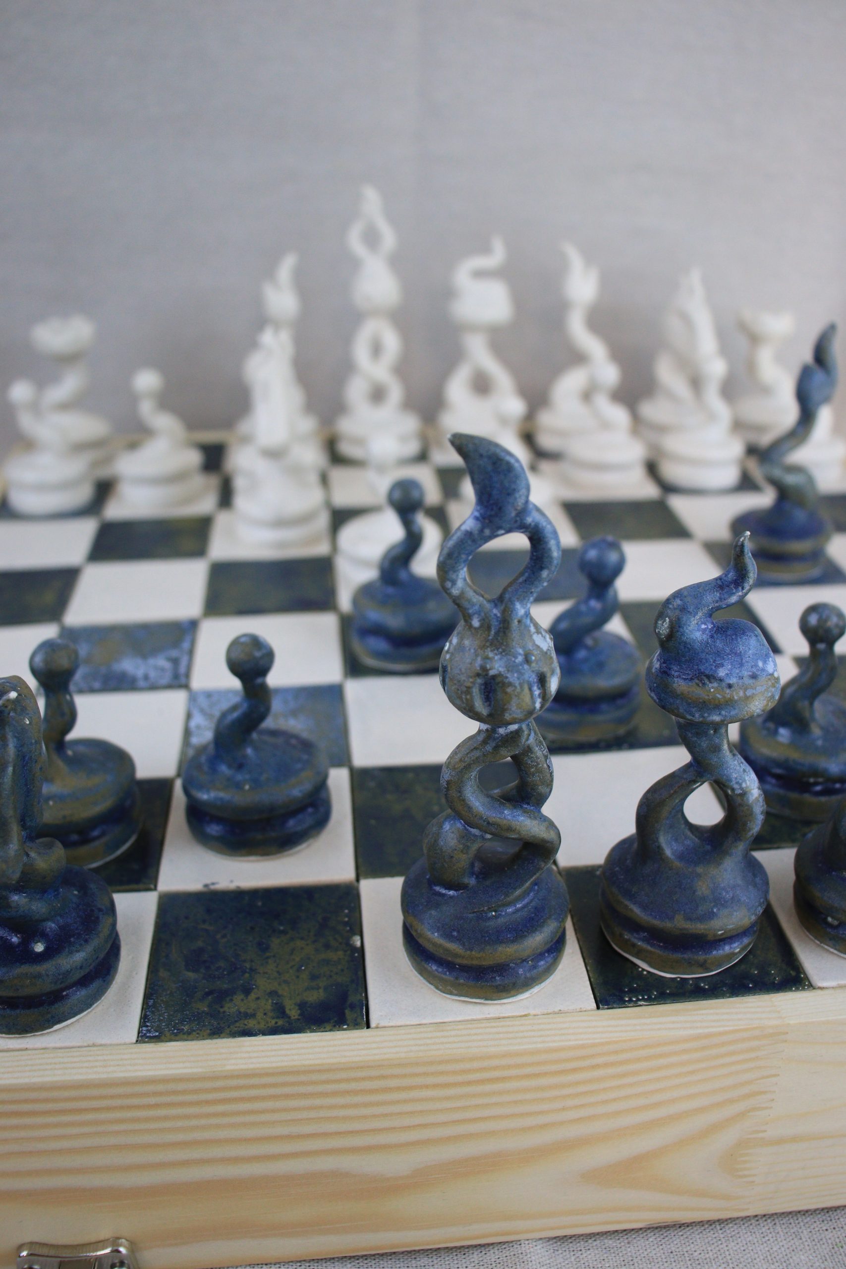 Pour aller par-delà les sculptures, j’ai créé Le Jeu D’Échecs en céramique. Une façon d’explorer différemment les limites des émotions. Comme un empire à conquérir, comme des lignes à croiser, les courbes de ses pièces toutes uniques s’entrelacent pour former une unité aussi forte, pour décrocher des sourires et des états d’âme.