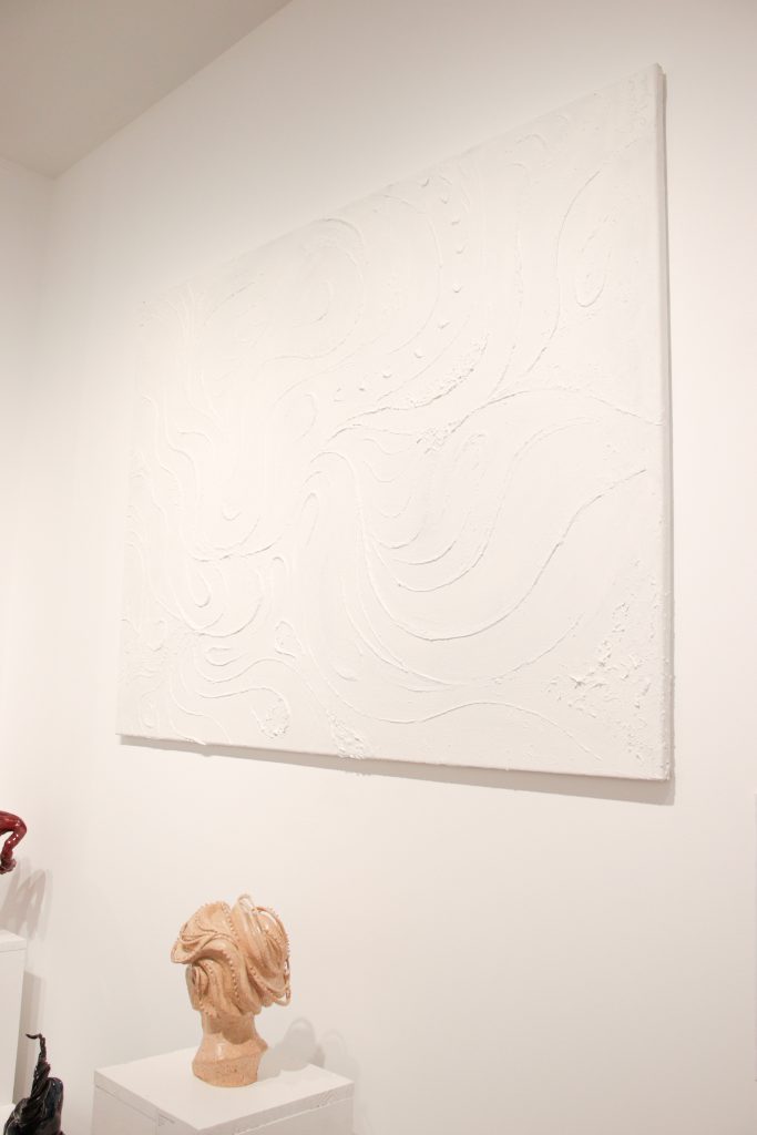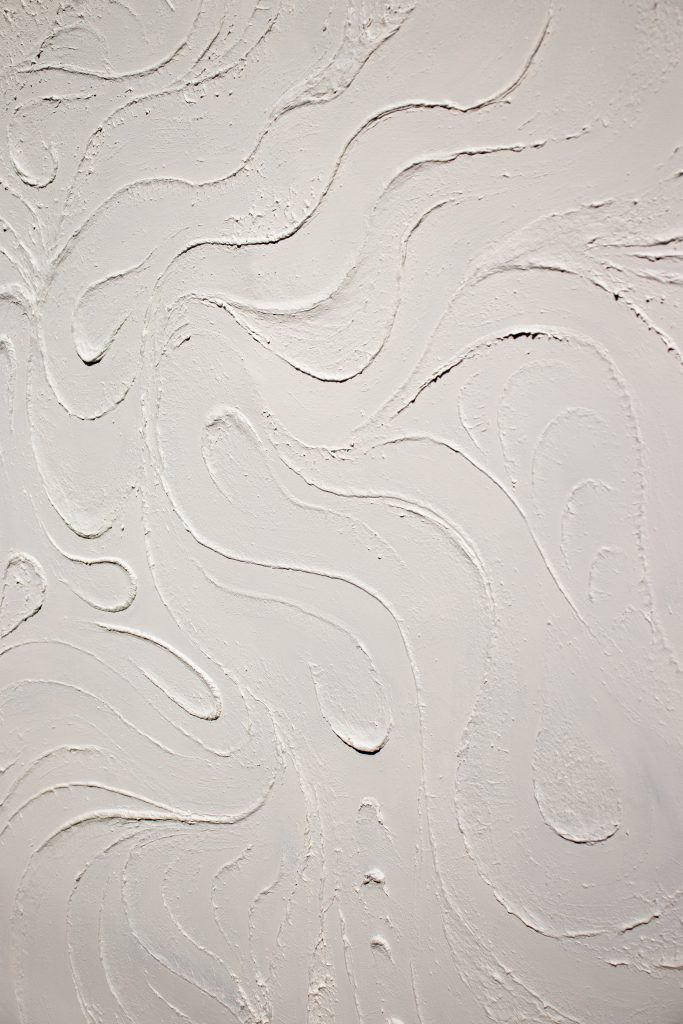 Pour continuer dans les recherches graphiques, ces toiles bougent au rythme des vagues ou des pensées. Légèrement en volumes, ces traits dansent ensemble sans jamais se superposer, sans jamais se gêner.