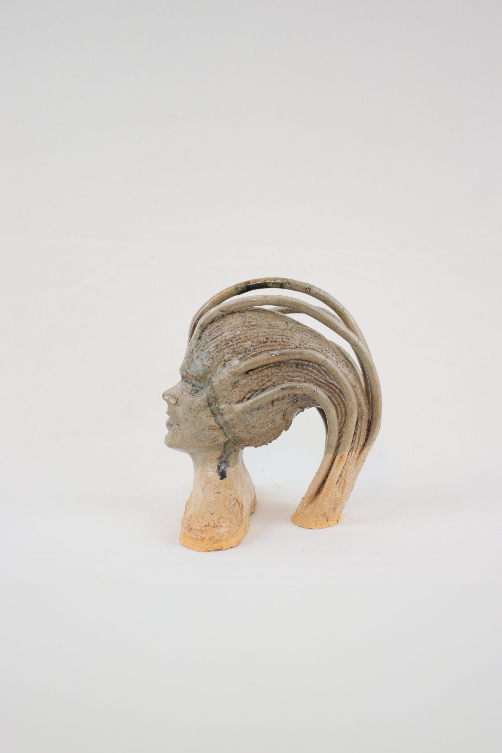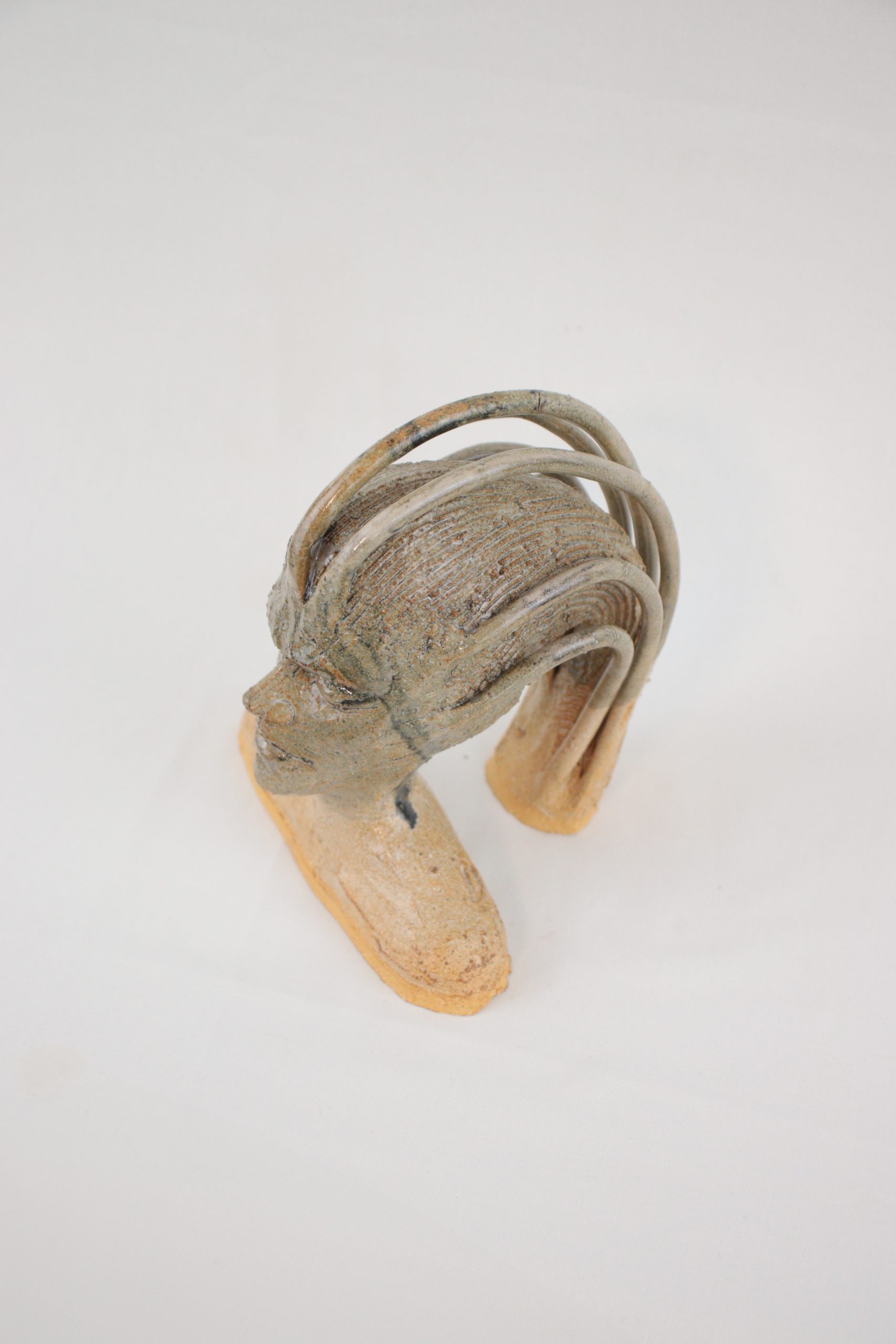 Petite sculpture noire et beige en grès émaillé – modèle unique.